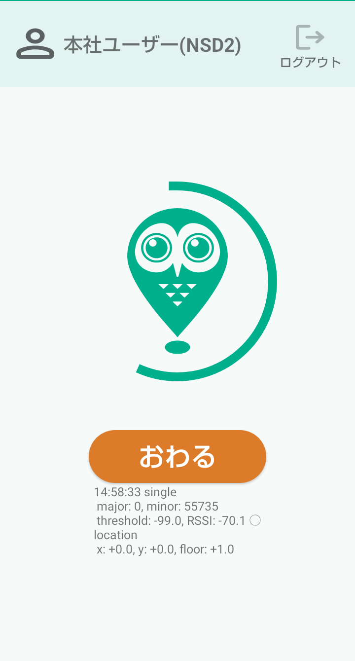 「はじめる」 ボタンを押した後、60 秒経過してもビーコンを取得できなかった場合 端末が 5 秒程度バイブレーションし、画面に 「ビーコンの近くに移動してください」 と 大きな文字で表示されます。