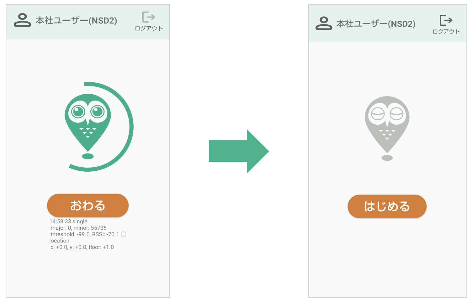 [はじめる]、[おわる]ボタンが灰色の時は処理中ですので、しばらくお待ちください。