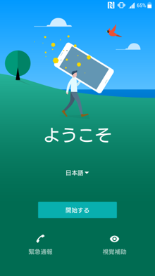 端末を起動するとまず[ようこそ]という画面が表示されるので[開始する]ボタンを選択し次へ進みます。