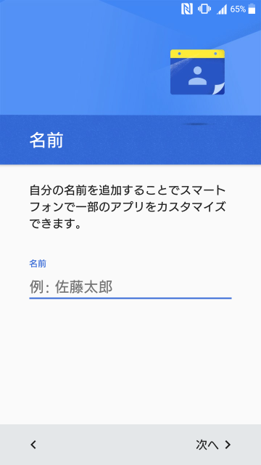 [名前]の設定では何も入力せず、[次へ]を選択してください。