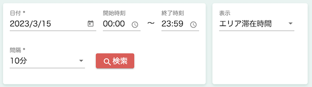 エリア分析画面、測定データ取得画面(時間別滞在エリア)