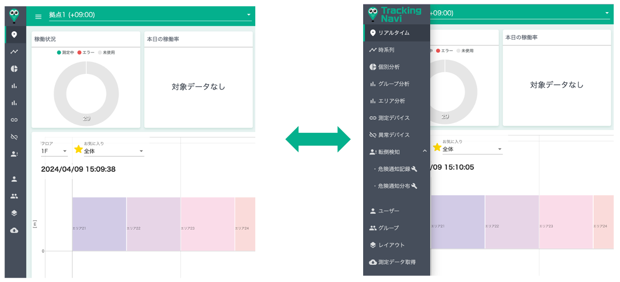 アイコンのみの表示状態の時、サイドバーにカーソルを移動させるとメニューの内容が表示されるようになりました。