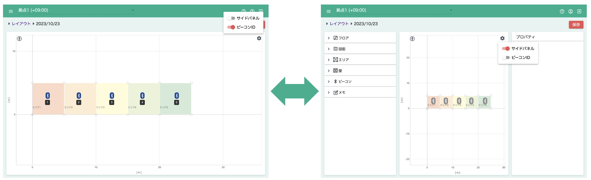 リリース 2.21.62023年10月23日 · 約1分💅 機能改善 レイアウト編集画面 マップ内右上の設定からビーコンIDやサイドパネル表示の切り替えができるようになりました! どのビーコンが何処に設置しているのかを確認したい際などにぜひご利用ください。